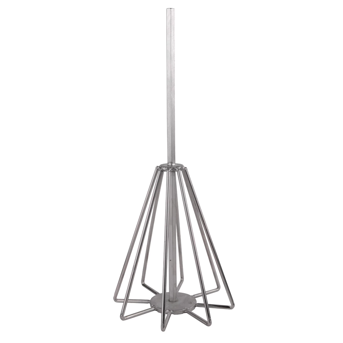 Deze robuuste Groundbait Mixer Large is ontworpen met 8 RVS draden van 4mm. Door het connectiepunt aan de onderkant naar boven te brengen ontstaat een volledig vlakke onderkant, zodat beschadigingen aan emmer of teil worden voorkomen. De 8mm dikke 6-kantige as zorgt voor een goede fixatie in de boormachine. De afmetingen en onderlinge afstand tussen de draden zorgt ervoor dat elke mix van voer en/of leem grondig gemengd kan worden. Door de korte hoeken aan de onderzijde kan elke plaats in de emmer of teil bereikt worden, zodat er geen ongemengde gedeeltes achterblijven.