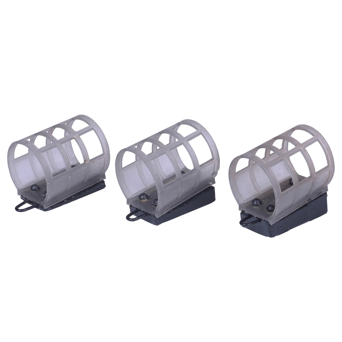 Deze Plastic Cage Feeder combineert de eigenschappen van een dichte plastic voerkorf en een gaaskorf. Dankzij het open design aan de bovenkant zal het voer en aas snel vrijkomen. Echter de afgedichte zijkanten reduceren het vrijkomen van het voer en aas bij het neerkomen en afzinken in het water. De getaperde vorm van het gewicht met het zwaartepunt naar beneden zorgt ervoor dat deze korven zeer goede werpeigenschappen bezitten. Het metalen bevestigingsoog is zeer robuust in het gewicht verwerkt. De Plastic Cage Feeders zijn verkrijgbaar in Small, Medium en Large formaat in gewichten variërend van 10 tot 50g.