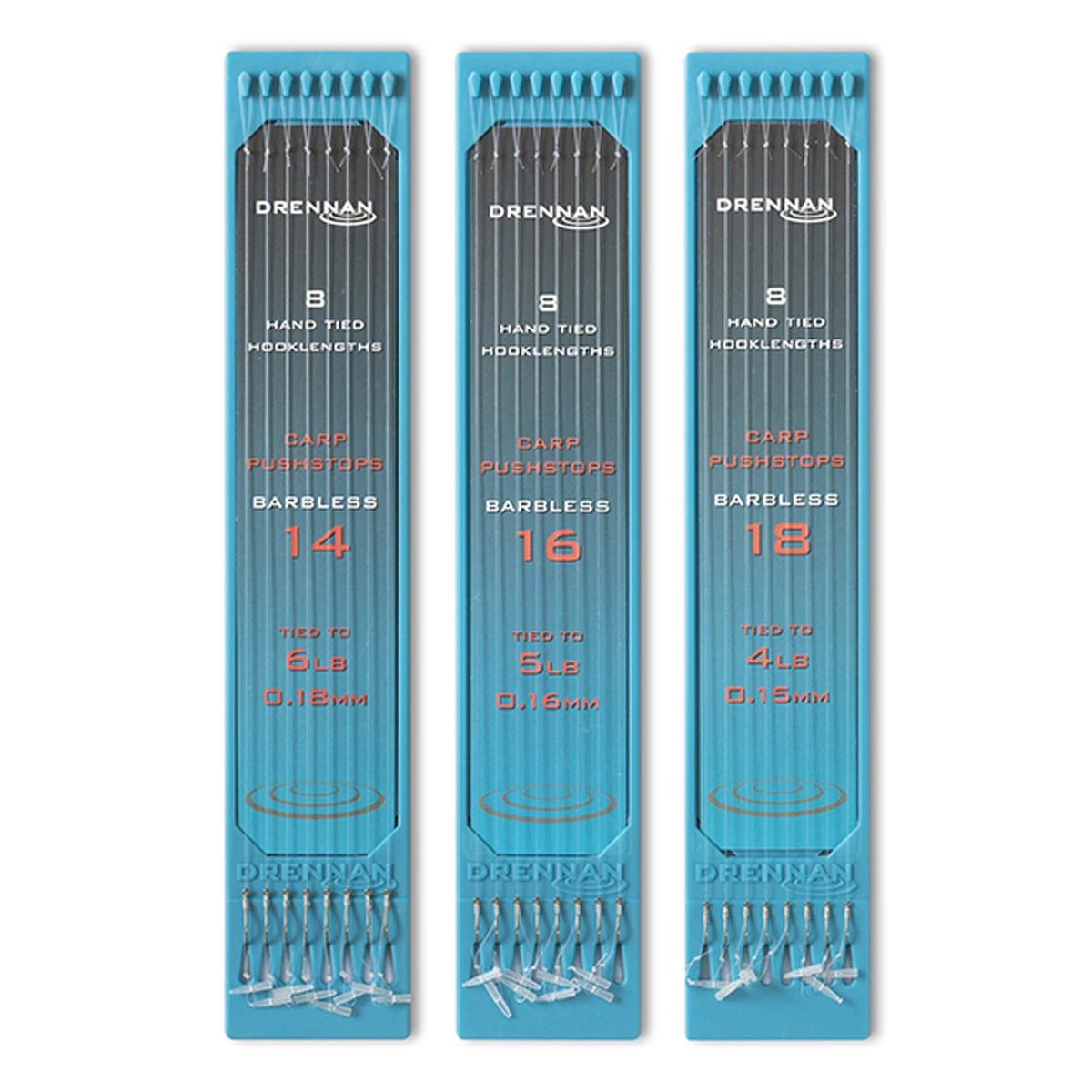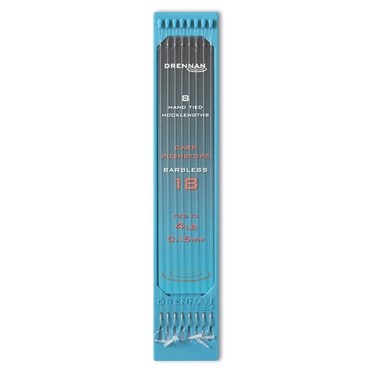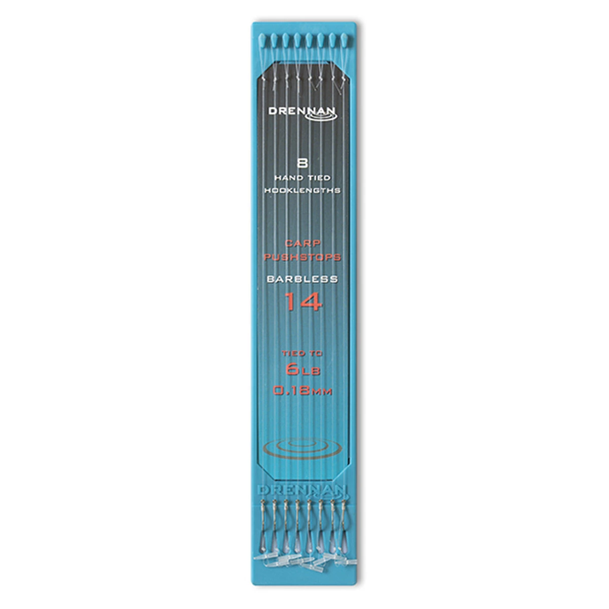 Kant en klare onderlijnen van Drennan die stuk voor stuk hoogwaardig zijn. De diameter van de lijn en de afmeting van de hair zijn afgestemd op de haak en het naar buitenstaande haakoog garandeert een perfecte inhaking.