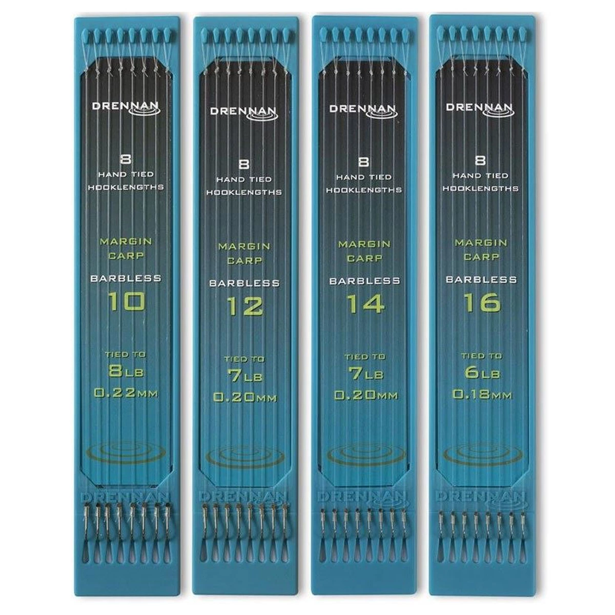 Kant en klare onderlijnen van Drennan die stuk voor stuk hoogwaardig zijn. De diameter van de lijn is afgestemd op de haakmaat en de naar buitenstaande bled garandeert een perfecte inhaking en aas presentatie.