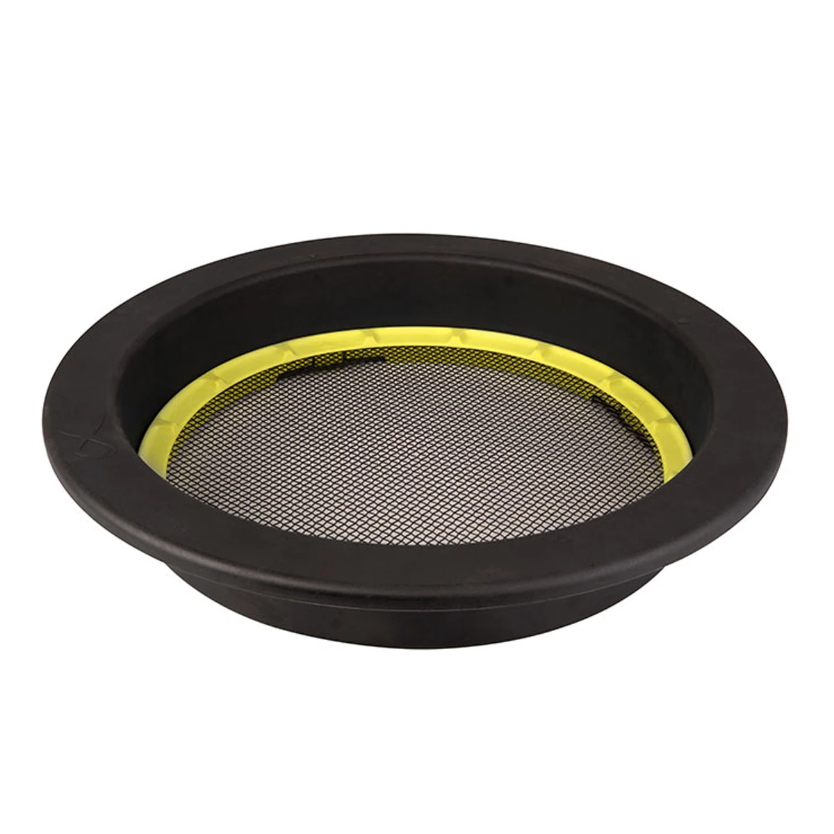 Deze zeef met een kunststof buitenrand past op de standaard 25 liter groundbait buckets. De zeef wordt geleverd met een 4mm zeef, wat ideaal is voor grondvoer of maden. Daarnaast is de zeef te veranderen in andere diameters.