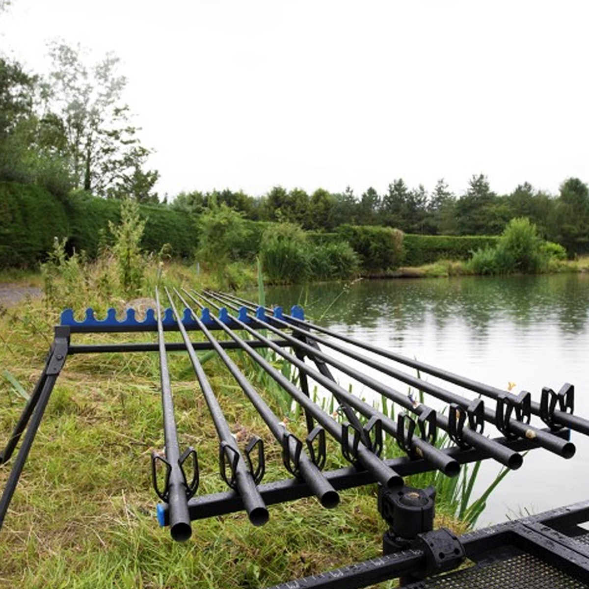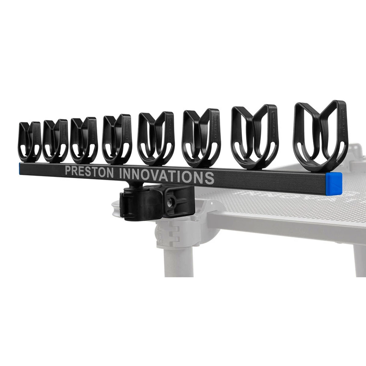 De Offbox 36 – Standard Gripper Roost van Preston Innovations is speciaal ontworpen om tot 8 topsets of hengels veilig op hun plaats te houden. De Standard Gripper Roost is voorzien van speciale steunen die de topsets vastklemmen, hierdoor blijven topsets in allerlei diameters goed vastgeklemd zitten. De Gripper Roost kan op een groot aantal aastafels en zitkisten bevestigd worden.