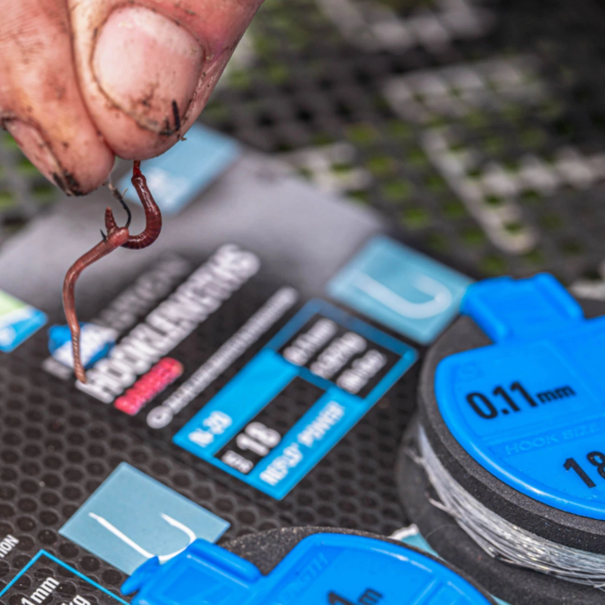 en assortiment onderlijnen van hoge kwaliteit, speciaal ontworpen voor het feeder vissen. Elke spoel heeft 10 1m lange onderlijnen die eenvoudig kunnen worden afgewikkeld en aan uw hoofdlijn bevestigd kunnen worden. De volgende onderlijn kan vervolgens op zijn plaats worden bevestigd met behulp van de roterende pen op de spoel, waardoor onafhankelijke pinnen overbodig zijn. Er zijn hoogwaardige natuurlijke N-serie haken gebruikt in combinatiemet de beproefde Reflo Power lijn. De rolletjes kunnen worden opgeslagen in het Revalution Storage System, perfect om al uw rigs in orde te houden. Weg van vocht en direct zonlicht.