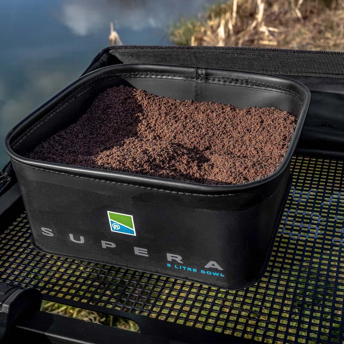De Supera Eva Bowl van Preston Innovations is met een capaciteit van 5 liter een voerbak voor grotere hoeveelheden los voer of pellets. Deze Bowl is aanzienlijk groter dan een standaard aasdoos maar toch compact genoeg om op uw aas plateau te plaatsen