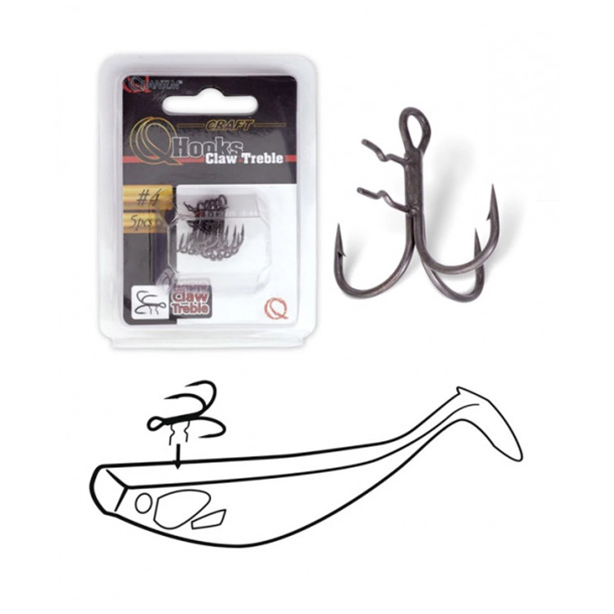 De Quantum Claw Treble Hook is zo gevormd dat ze met haar ‘klauw’ zeer eenvoudig op elk punt in de shad vastgezet kan worden, zonder deze te beschadigen of de actie te beïnvloeden. En het bijzondere hiervan is dat alle drie de haakpunten vrij liggen om de roofvis te haken.