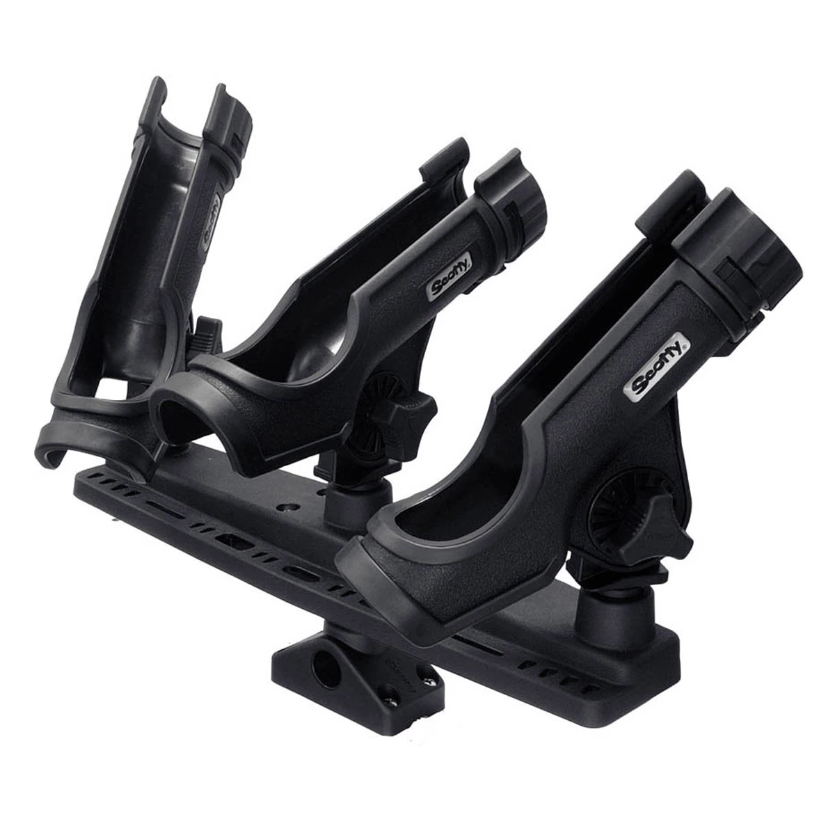 De Triple Rod Holder van Scotty is een multifuntionele hengelsteun. De steun wordt geleverd met een Side Deck Mount zodat deze makkelijk op de boot bevestigd kan worden. Op de triple rod holder kunnen 3 hengelsteunen bevestigd worden, maar ook andere attributen zoals een dieptemeter kunnen er op bevestigd worden. Ook kunnen er aan de voorkant van de triple rod holder allerlei kunstaas en tangen opgehangen worden.