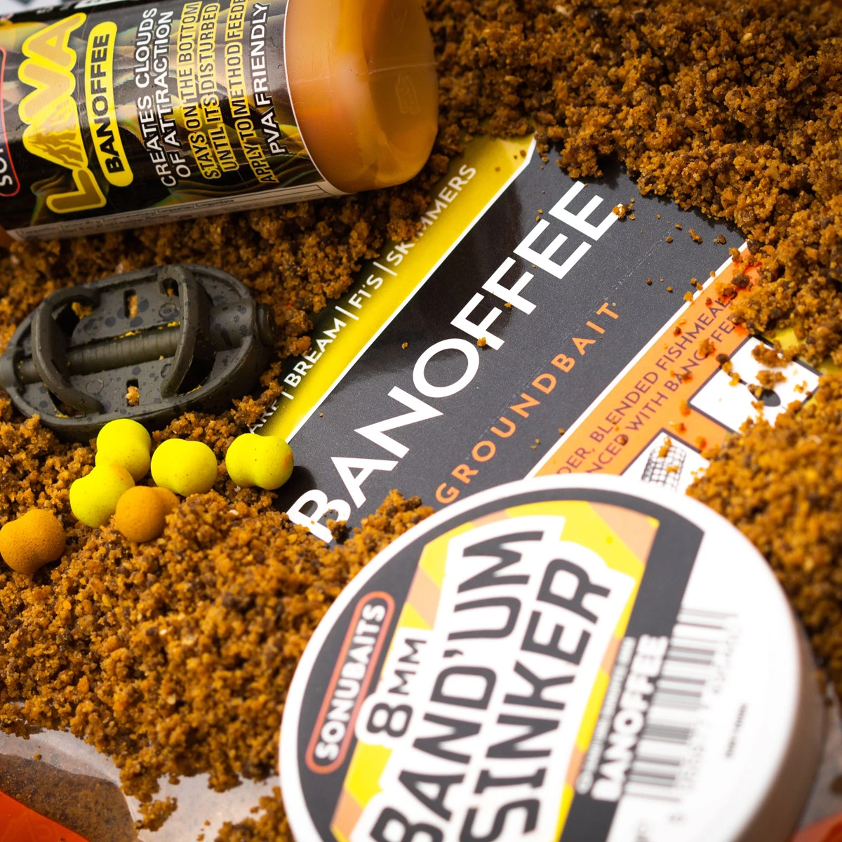 De Sonubaits Band Um Sinkers kunnen dankzij de speciale vorm perfect met een Bait Band bevestigd worden, hierdoor zijn de Band Ums ideaal voor het vissen met de methodfeeder of een Pellet Waggler.