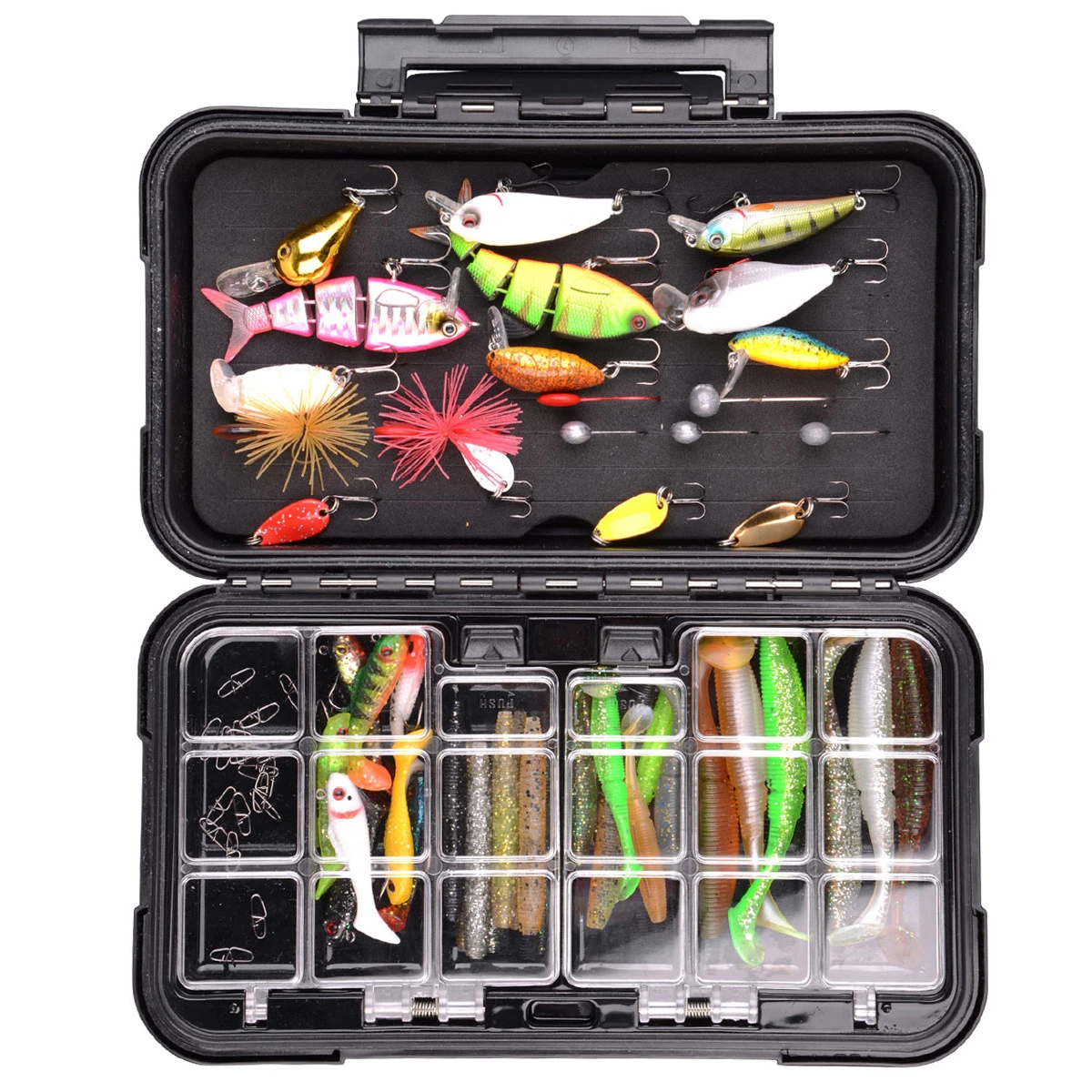 Een grotere versie van de Multi-Stocker met aan de ene kant EVA foam met sleufjes om stingers en micro pluggen, lepels en loodkopjes op te bergen. De andere kant is voorzien van 6 gemakkelijk te openen compartimentjes voor kleine accessoires.
